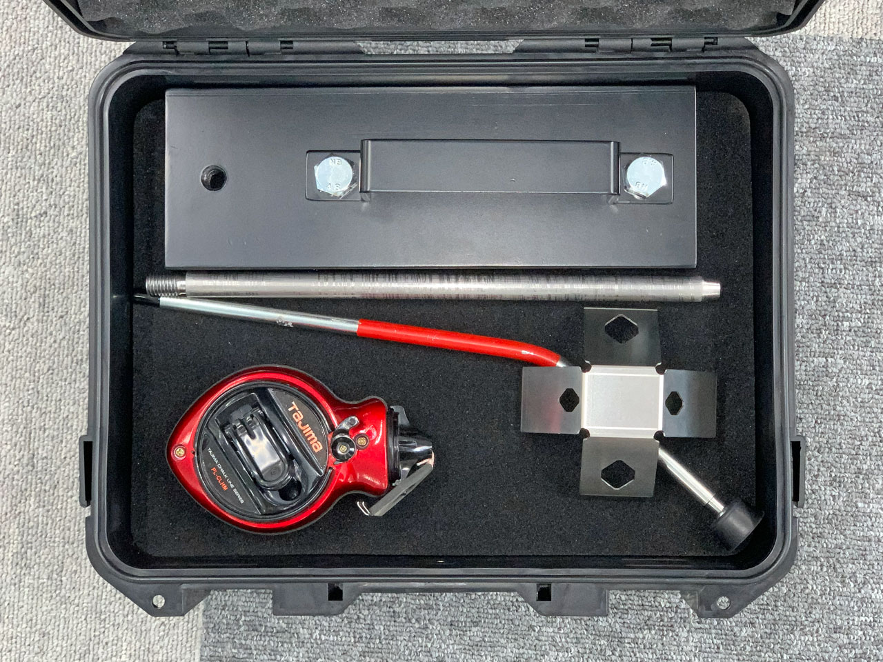 | 寸 法 | ベースプレート:幅90mm × 長さ260mm × 厚さ×22mm センターピン:φ13mm × 長さ220mm 収納ケース:幅340mm × 奥行270mm × 厚さ×125mm |