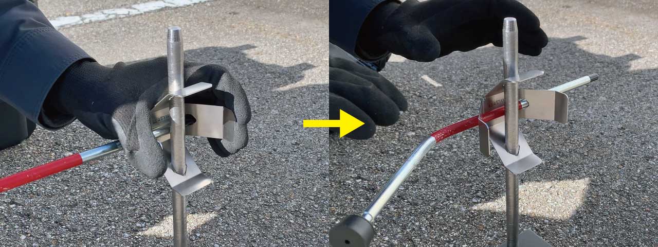 - チョークラインのフックをスライドアーム先端のゴムに引っ掛け、壁面に触れるようにセットします。