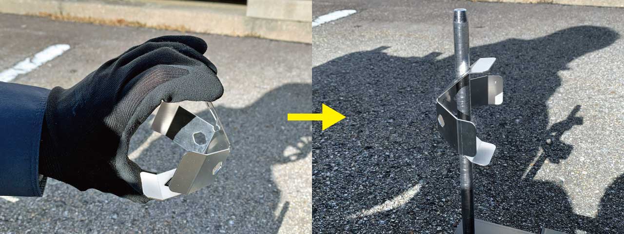 プレートの両端に指をかけて少したわませるとスムーズに取り付けられます。
