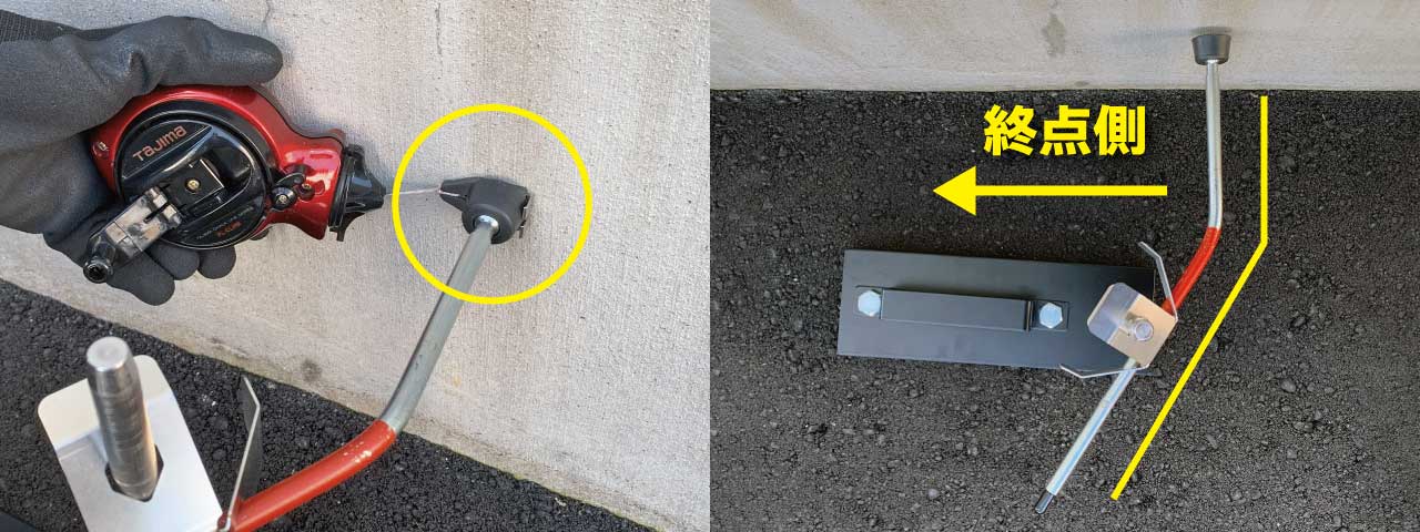 - 糸を引き出しながらチョークライン本体を持って終点まで移動します。
