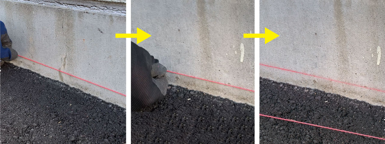 - 終点の高さに糸を合わせたら、指で弾いてマーキングします。